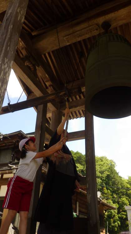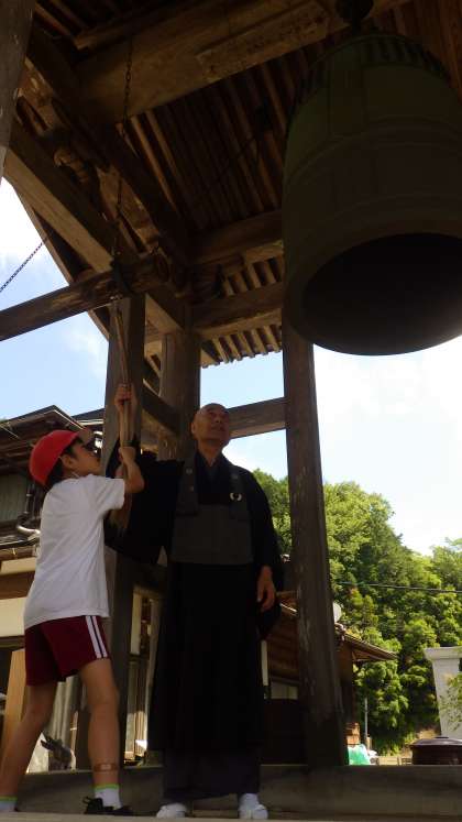 調べ学習を通して知った数多くのゆかりの地の中から、今回は「廣圓寺の鐘」にフォーカスをあて、現地訪問しました。子どもたちが鳴らした「鐘の音」は、本城小学校まで力強く響き渡っていました。
