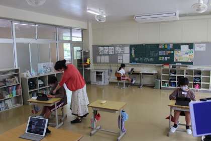 野外学習を通して、より広い人間関係を築き、後の中学校での生活を見据えた教育活動をめざす小原地区3校。本時は、この目的の達成に向けて、計画的なカリキュラムのもと実践されている1コマです。