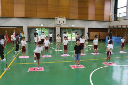 すこやか委員会主催「保健集会」 公開日 2023/09/12 更新日 2023/09/12 特別活動 本日5限、「姿勢」をテーマにした保健集会が行われました。〇×クイズから始まり、すこやか委員による寸劇、そして体を動かす活動と、アイデアと工夫に富んだ内容で、「姿勢」について楽しく学ぶ機会となりました。良い姿勢の必要性を少しでも感じながら、明日以降の生活の中で姿勢への意識がより高まり、みんなで声をかけあっていけるようになるとすばらしいなあと思います。