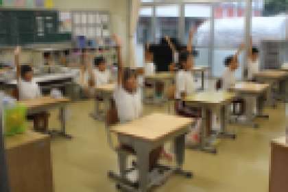5限の保健集会が終わった後の6限での子どもたちの様子です。担任の先生の投げかけに応える2年生の一コマです。ちょうど廊下を通り過ぎるときに目にした一瞬をとらえました。6年生の教室では、「今日の集会で学んだことを自分の姿で表現しよう」という問いかけに、「グー、ペタ、ピン」の合言葉に合わせて、彼らが表現した一コマです。続けて、「次はカメラ目線で、グー、ペタ、ピン」という合図にピタッとそろった6年生の姿です。やるじゃん!!