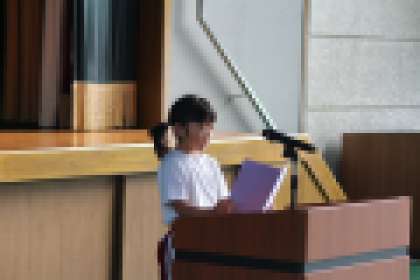 先週から始まった「秋の全国交通安全運動」を受けて、本城小学校では毎年、標語に取り組んでいます。今年度は、すでに学級活動で、交通安全についての授業で作文を書いた2年生の代表児童に意見発表をしていただいたうえで、全校で標語に取り組むことにしました。全校の前で意見発表をした●● ●●さんの作文内容はもとより、物おじせず、堂々とはっきりとした口調で話すその姿は、とても立派で、聞く人の心にもきっと響いたことと思います。