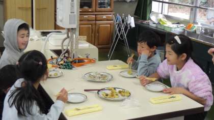さつまいもパーティー 公開日 2023/12/20 更新日 2023/12/20 各学年から みんなで収穫したさつまいもを、みんなで調理して食べました。 おいもを潰してスイートポテトに! 慎重にスティック状に切って芋ケンピ風に! 食べてみたら、、、そのおいしさにみんな大喜びでした。