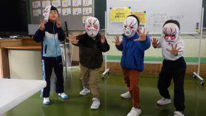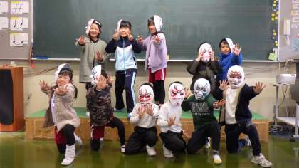 歌舞伎体験・お面づくり(1・2年) 公開日 2024/01/22 更新日 2024/01/22 各学年から 1月22日、小原歌舞伎の体験で、1・2年生がお面づくりに挑戦しました。 お面に歌舞伎での隈取をし、ポーズを取ってみました。