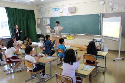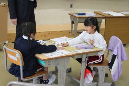 本城っ子はいつも、お父さん、お母さんが授業を観に来てくれることをとても楽しみにしている様子が見てとれます。カードを使ったペア活動で楽しく学んだり、ボイスメモや発表ノートなどのICTを活用しながら、個から全体への学習過程のなかで学びを深めたりしていきます。