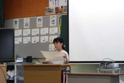 8月22日(木)に開催された「小原地区戦没者追悼式」では、学校を代表して6年生児童が作文を読み上げました。そして本集会においても、6年生と3年生の代表児童に作文を読み上げてもらいました。過去の歴史から今を学ぶ貴重な機会となることを願って・・・。