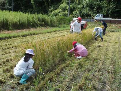 5月に行った「もみまき」「田植え」から4か月。「稲刈り」の時期がやってきました。今年は例年を上回る猛暑と残暑に加え、先日の大型台風の影響もあり、生育が心配されましたが、地域ボランティア講師の維持管理のおかげで、無事に収穫することができました。