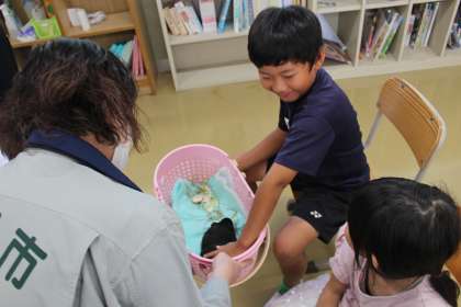 今年はかわいいモルモットとのふれあいでした。モルモットの鳴き声で気持ちがわかることやモルモットの心臓を打つ音は人間よりかなり速いことなどを知りました。