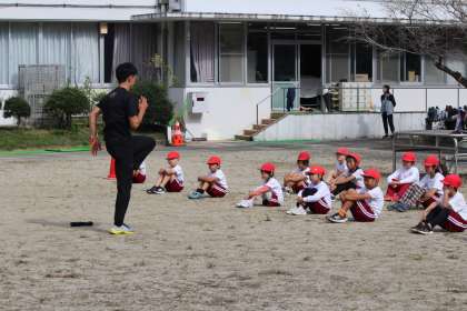 オリンピアンによる全校「走り方教室」 公開日 2024/10/25 更新日 2024/10/25 学校の特色ある活動 陸上競技を通じて、オリンピックという大舞台を経験したオリンピアンを迎え、「走り方教室」が行われました。「速く走れるようになりたい人?」という問いかけに、ほとんどの本城っ子が手を挙げるところから教室がスタートしました。