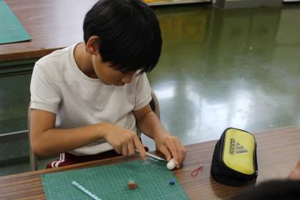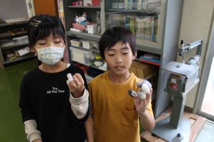 繭で工作2 公開日 2024/11/05 更新日 2024/11/05 学校の特色ある活動 そして今日、とよた衣の里プロジェクトのコーディネーターにお越しいただき、カイコの繭を使っての工作を体験しました。自分のねがい事を書いた紙を繭の中に収める、オリジナリティーあふれるキーホルダーを作りました。