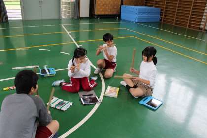 毎週火曜日の「なかよしタイム」に全校で取り組む打ちはやしの練習。後期が始まってからは、火曜日にとどまらず、曜日に関係なく、休み時間に校舎から篠笛を練習する音色が聞こえてきます。