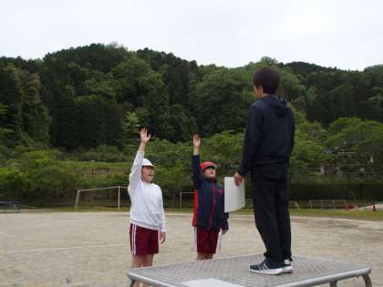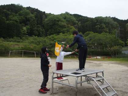 今日、2名の6年生は、開会式で行う「優勝旗返還」「選手宣誓」「準備運動」の打ち合わせと練習を行いました。