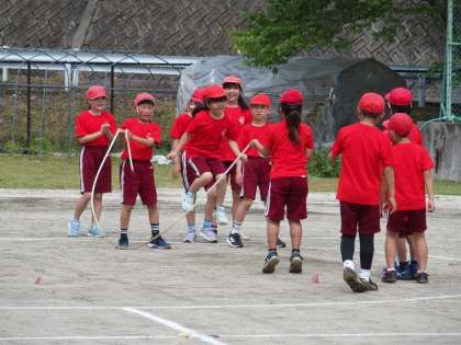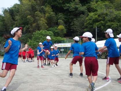 5/18 運動会(その3) 公開日 2025/05/18 更新日 2025/05/18 学校行事 続いて、長縄跳び(8の字跳び)「みんなでジャンプ」です。 1年生から6年生まで入っての競技です。 跳ぶ子に応じて回す速さを変えるなど、仲間を思いやる姿も見られました。 この競技は、赤組の勝ちでした。