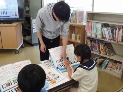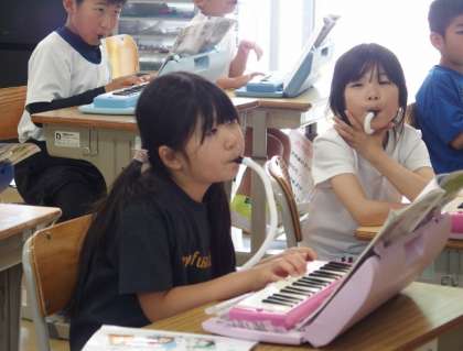3時間目、1・2年生は音楽「どれみとなかよくなろう」の単元で、鍵盤ハーモニカの練習をしていました。