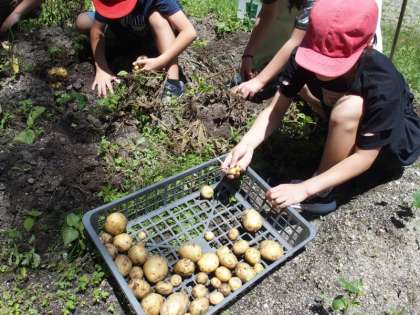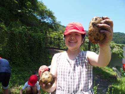 5・6年生は理科で、ジャガイモの収穫を行いました。