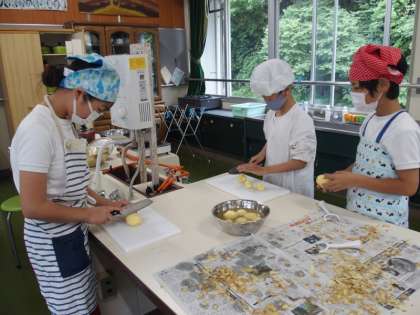 ジャガイモは、先日、理科の授業でたくさん収穫できた新ジャガイモを使うことにしました。