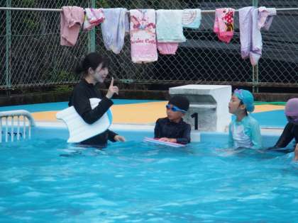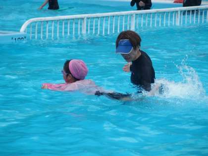 中〜高学年は能力に応じ、もぐる練習、バタ足の練習、クロールや平泳ぎの練習とコースごとに練習を行いました。