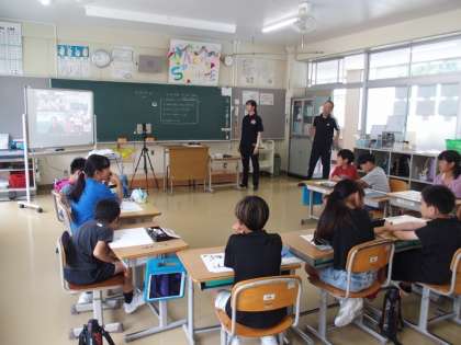 7月4日、3・4年生が、小原学区の小学校(道慈小・小原中部小)とのオンライン学習を行いました。