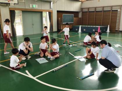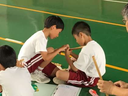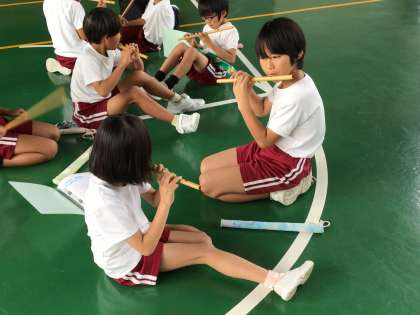 上級生が下級生に指使いを教えたり、かけ声のタイミングを教えたりしている姿も見られました。