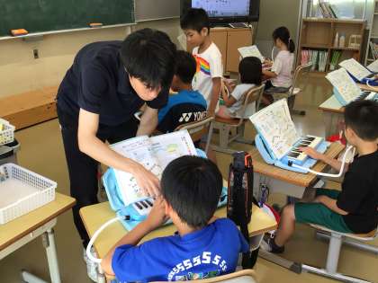 1・2年生は、音楽で鍵盤ハーモニカの練習を行っていました。