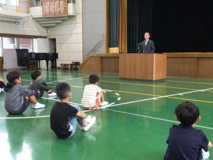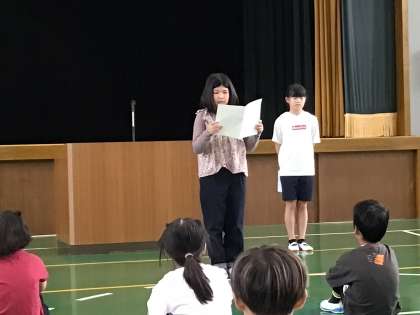 10/10 前期終業式 その1 公開日 2025/10/10 更新日 2025/10/10 学校行事 1時間目に、今年度前期の終業式を行いました。 まず、1年生と6年生の意見発表を聞きました。 全員、前期にがんばったこととと後期の目標を、はっきり伝えることができました。 その後、校長先生からのお話を聞きました。