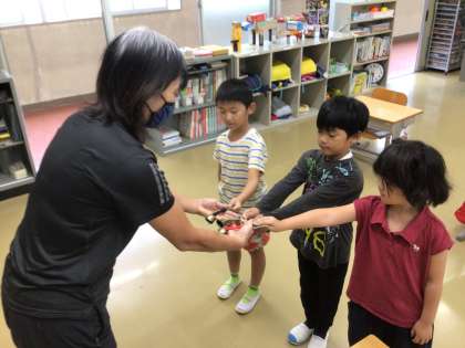 子どもたちは早速、ランドセルにつけ、鈴の音を確かめていました。