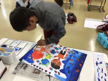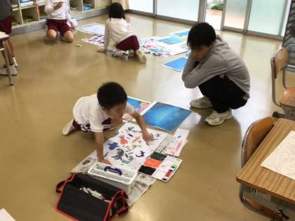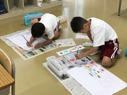10/16 学習の様子(2年図工) 公開日 2025/10/16 更新日 2025/10/16 各学年から 2年生が、「おはなしの絵」(読書感想画)の制作に取り組んでいました。 2年生の本は「にじいろのさかな」です。 お話を聞き、海の中の様子を想像しながら色をつけていました。 最後までていねいに取り組みましょう。