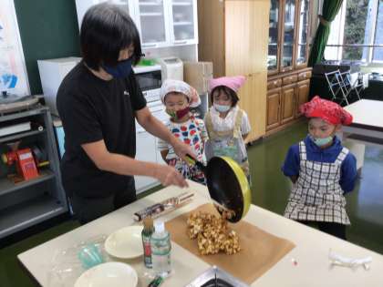 その後、担任の先生が作ってくださったカラメルソースをからめて冷やしたら、できあがり!