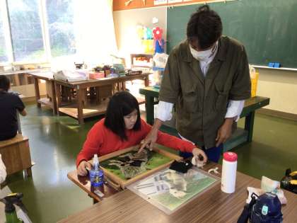 10/27 和紙作品制作(5・6年) 公開日 2025/10/27 更新日 2025/10/27 特色ある学校づくり推進事業 本日、和紙作家の二村さんに来ていただき、5・6年生が2回目の和紙作品制作のご指導をいただきました。 動物に応じて和紙の置き方を変えるなど、いろいろな技法を教えていただきました。 みんな、素晴らしい作品を仕上げることができました。 1年間ありがとうございました。