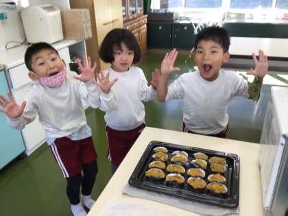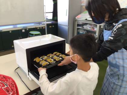 1年生が、先日収穫したサツマイモを使って、調理実習をしていました。