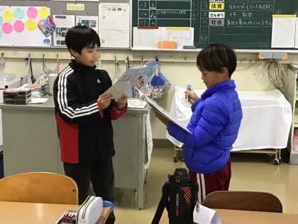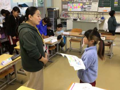 11/10 学習の様子(3・4年外国語) 公開日 2025/11/10 更新日 2025/11/10 各学年から 3・4年生は、2時間目にALTの先生と一緒に外国語の授業を行いました。 今回は、時間の尋ね方や答え方の練習をしていました。 学んだ方法を使って、友達や先生と、好きな時刻やその理由などを伝え合うことができていました。