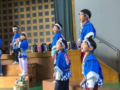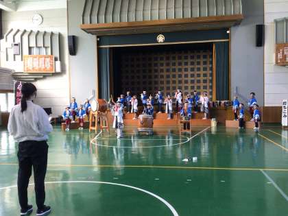 ハッピを着て、入場の仕方、学校紹介や曲の紹介など、本番通りに通して練習をしました。