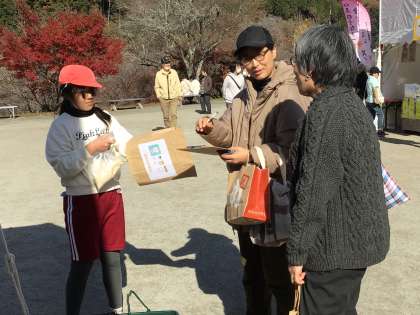 演奏の後、5・6年生は会場の方にアンケートをとり、協力していただいた方に、お礼として、自分たちで収穫したお米をプレゼントしました。