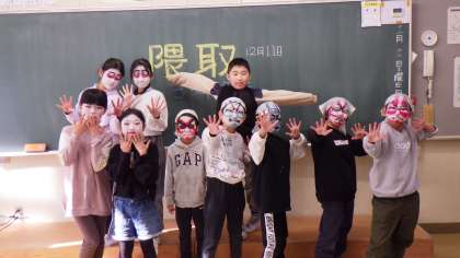 12/11 歌舞伎体験(3・4年)その3 公開日 2025/12/11 更新日 2025/12/11 特色ある学校づくり推進事業 みんな、立派な歌舞伎役者に変身しました。 2日間の体験を通し、小原地区に伝わる歌舞伎についてより親しみがわき、理解が深まったと思います。 このような素晴らしい伝統を、これからも受け継いでいけるとよいですね。 保存会の皆様、今回はご指導ありがとうございました。