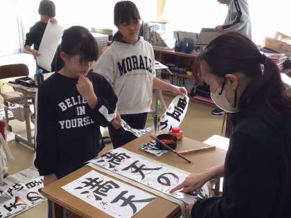 12/19 書写指導(5・6年 2回目) 公開日 2025/12/19 更新日 2025/12/19 各学年から 3時間目は5・6年生です。 バランスよく書くための助言をいただいていました。 冬休みにも練習をし、年明けによい字が書けるようにがんばりましょう! 写真は、一部加工しています