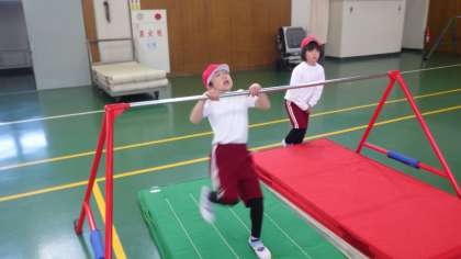 鉄棒では、空中前回りや逆上がり、こうもりふり、地球回りに挑戦しました。