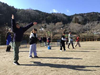 完成したら、早速運動場で竹とんぼを飛ばしてみました。