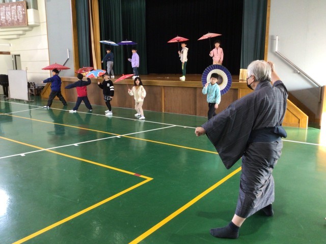 2/3 歌舞伎の指導 公開日 2026/02/03 更新日 2026/02/03 特色ある学校づくり推進事業 1・2年生が、小原歌舞伎保存会のの方を講師に迎え、歌舞伎の指導(2回目)をしていただきました。みんな、前回よりも動きや見得の切り方、セリフの言い方も上手になっており、講師の先生にもほめていただきました。本番は14日の城山学習発表会です。指導していただいたことを忘れず、練習していきましょう。 +1