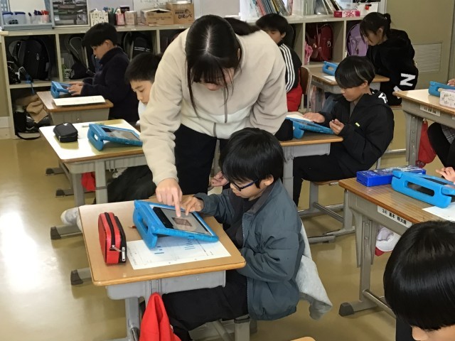 今日、ICT支援員の先生に来ていただき、各学年でICTの授業を行いました。