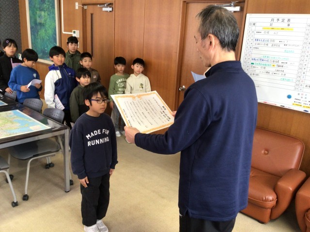 小原地区の小中学校4校で年3回実施している「おばらすこやかウィーク(生活習慣点検)」において、年間を通じてがんばった子どもたちに、表彰を行いました。