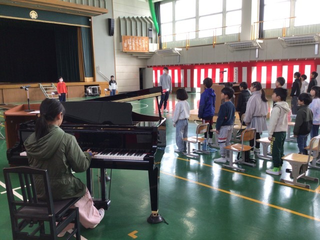2時間目に、卒業式の全体練習を行いました。