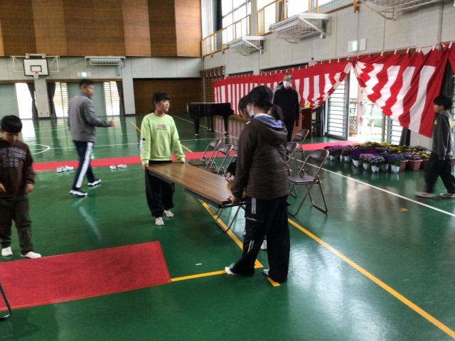 3/18 卒業式準備 公開日 2026/03/18 更新日 2026/03/18 学校行事 明日はいよいよ卒業式です。午後から、3〜5年生で卒業式の準備を行いました。体育館(式場)の準備、6年生教室の清掃・飾りつけ、廊下や階段の清掃など、みんなで分担をして一生懸命活動しました。準備は万端です。明日はよい式になると思います。 +4