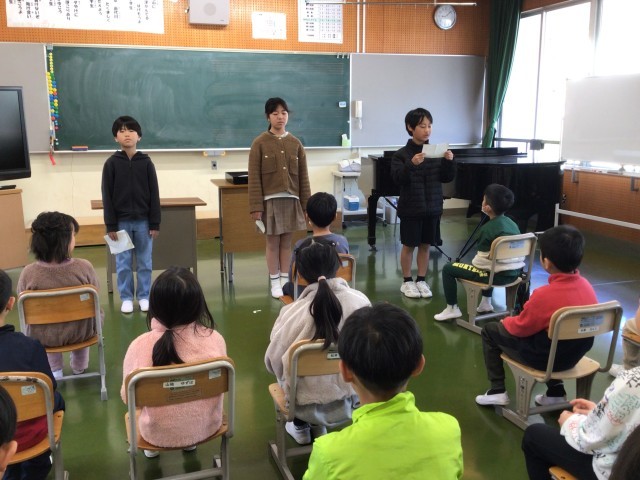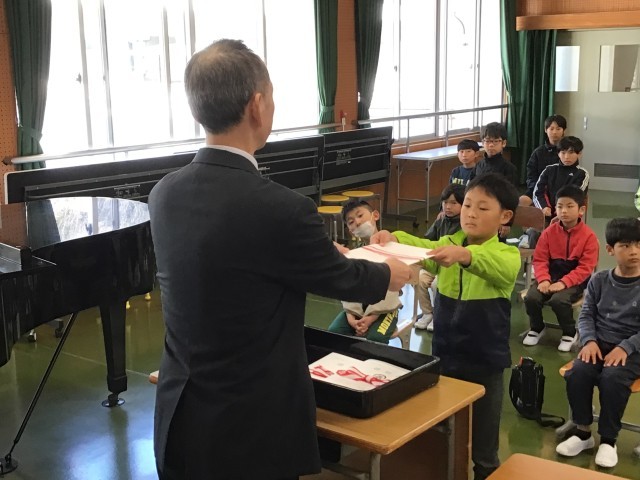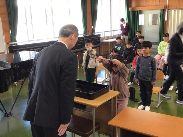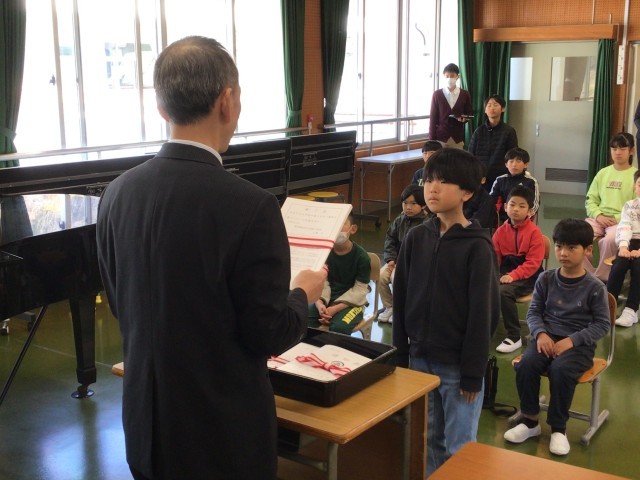 3/24 修了式 公開日 2026/03/24 更新日 2026/03/24 学校行事 今日は、令和7年度の修了式です。まず、全員が、今年1年間でがんばったことや、来年度の目標などを発表しました。それぞれ、すばらしい発表でした。続いて、修了証の授与を行いました。ひとりひとり、よい返事をすることができました。今年1年、みんな、大きく成長することができました。4月からはひとつ学年が上がります。新しい1年生も入ってきます。みんな元気にがんばりましょう! +7