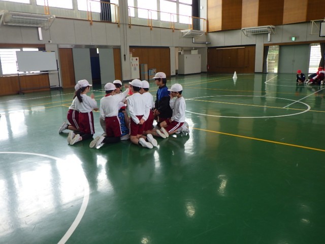 全校児童で王様ドッジをしました。上学年の子たちがとても上手に下の学年の子たちを導いていました。