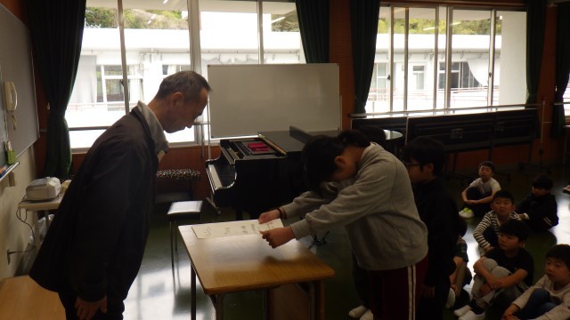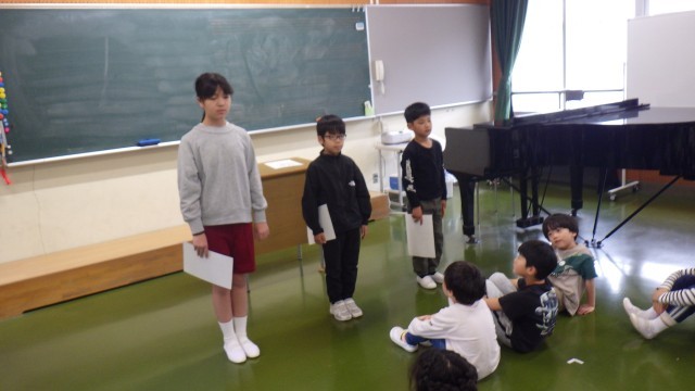 学級代表3名と委員会委員長2名の任命式を行いました。それぞれ立派な決意表明をしました。がんばってください。