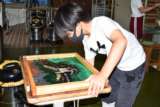 ○和紙講師のF先生は、子どもたちの思いや意図を受け止め、それに合わせてアドバイス...