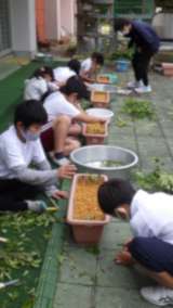 6月10日「四季桜の挿し木活動」3・4年生(1)