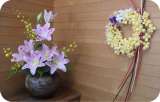 【花ボランティア・Tさんの生け花作品】 〇淡いピンク色のユリが映える、とても素...