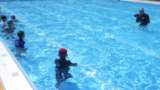 〇体育館での学習会の後、プールに移動し、「浮いて待つ」体験をしました。 〇はじ...