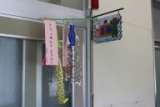 今日は七夕。1年生の教室前廊下には、手作りの七夕かざりがありました。短冊に書...