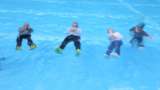 〇子供たちは、ペットボトルを胸の前で抱えて仰向けになり、上手に浮いていました。